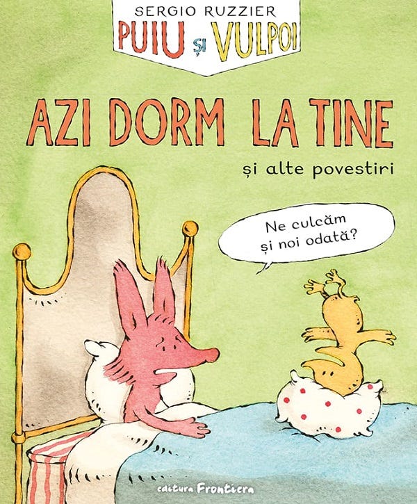5. „Azi dorm la tine și alte povestiri” de Sergio Ruzzier, editura Frontiera (4-6 ani)